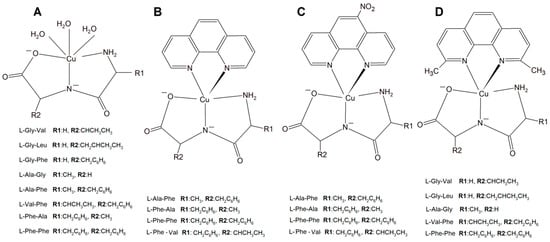 3.1.1. Copper Complexes with Amino Acids and Peptide