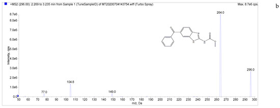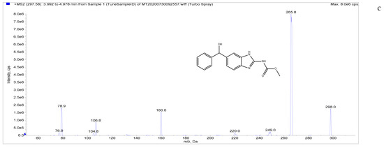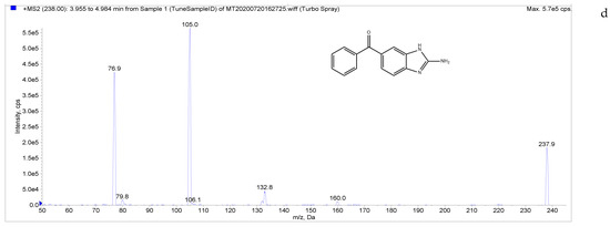 MS tuning solution preparation: Standard working solutions (5 µg/mL) of LMS, MBZ, HMBZ, and AMBZ were diluted stepwise with 50% methanol aqueous solution containing 0.1% formic acid to prepare a 50 ng/mL mass spectral tuning solution.
