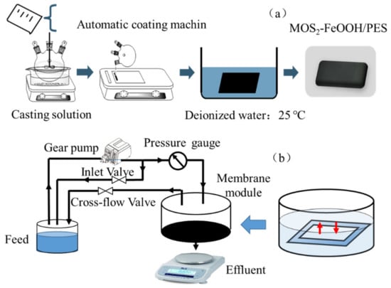 2.3. Preparation of MoS2-FeOOH/PES Composite Membrane