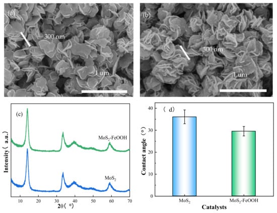 3.1. Characterization of MoS2 and MoS2-FeOOH Nanoparticles