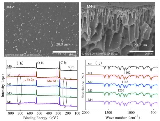 3.2. Characterization of MoS2-FeOOH/PES Composite Membranes