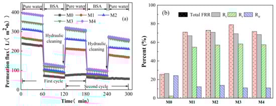 3.3. Ultrafiltration Performance of MoS2-FeOOH/PES Composite Membranes