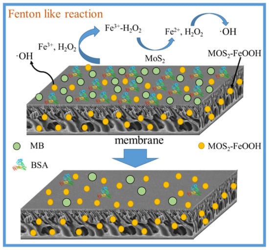 3.6. Catalytic Self-Cleaning Mechanism in the MoS2-FeOOH/PES System