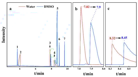 3.2. Gas Chromatographic Separation of SCFAs in Water and DMSO