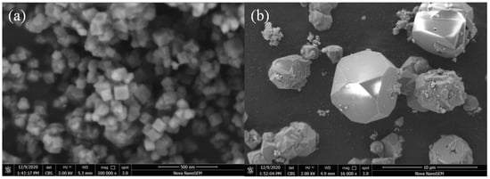 SEM images of UiO-66 with two crystal sizes ((a) 150 nm, (b) 6 μm).