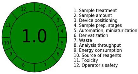- Pena-Pereira, F.; Wojnowski, W.; Tobiszewski, M. AGREE—Analytical GREEnness Metric Approach and Software. Anal. Chem. 2020, 92, 10076–10082. [Google Scholar] [CrossRef]