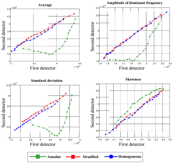 The diagram of extracted features in the first detector versus the second detector are shown in Figure 8, which shows the ability of separation for every feature.