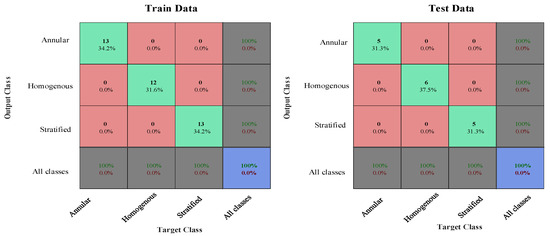 The performance of the employed network for the training and testing processes for regime classification are illustrated in Figure 11.