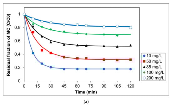 where C0 and C are the concentrations of MC in solution at time 0 and t, respectively.