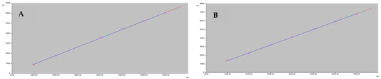 The linearity graph of feselol (A) and samarcandin (B).