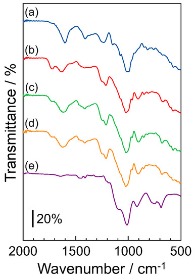 - Takano, N.; Fukuda, T.; Ono, K. Change in the structure of heat-treated siloxane oligomers as observed by FT-IR. Kobunshi Ronbunshu 2000, 57, 743–750. [Google Scholar] [CrossRef]