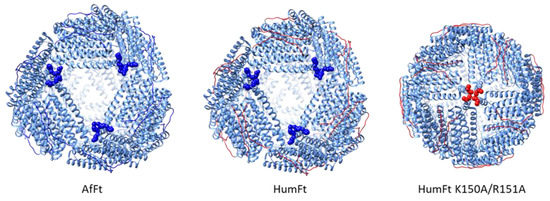 - Lawson, D.M.; Artymiuk, P.J.; Yewdall, S.J.; Smith, J.M.A.; Livingstone, J.C.; Treffry, A.; Luzzago, A.; Levi, S.; Arosio, P.; Cesareni, G.; et al. Solving the Structure of Human H Ferritin by Genetically Engineering Intermolecular Crystal Contacts. Nature 1991, 349, 541–544. [Google Scholar] [CrossRef]