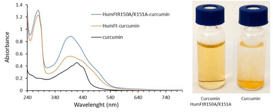 - Chen, L.; Bai, G.; Yang, S.; Yang, R.; Zhao, G.; Xu, C.; Leung, W. Encapsulation of curcumin in recombinant human H-chain ferritin increases its water-solubility and stability. Food Res. Int. 2014, 62, 1147–1153. [Google Scholar] [CrossRef]