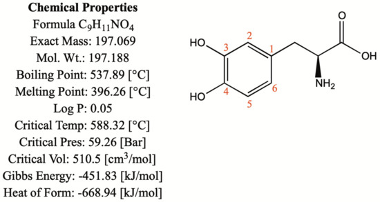 - Soares, A.R.; Marchiosi, R.; de Cássia Siqueira-Soares, R.; de Lima, R.B.; dos Santos, W.D.; Ferrarese-Filho, O. The role of L-DOPA in plants. Plant. Signal. Behav. 2014, 9, e28275. [Google Scholar] [CrossRef]