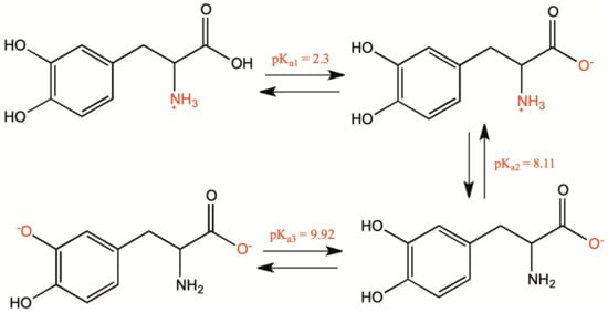 - Zhou, Y.Z.; Alany, R.G.; Chuang, V.; Wen, J. Studies of the rate constant of L-DOPA oxidation and decarboxylation by HPLC. Chromatographia 2012, 75, 597–606. [Google Scholar] [CrossRef]