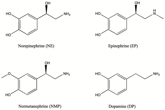 - Bergmann, M.L.; Schmedes, A. Highly sensitive LC-MS/MS analysis of catecholamines in plasma. Clin. Biochem. 2020, 82, 51–57. [Google Scholar] [CrossRef]