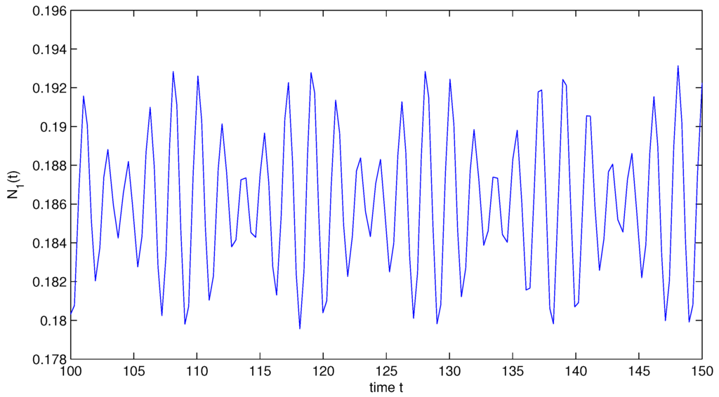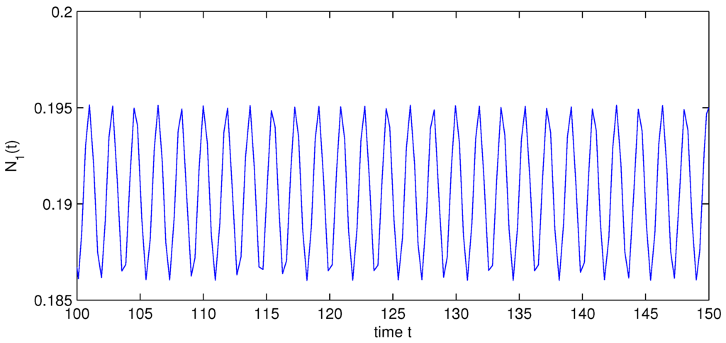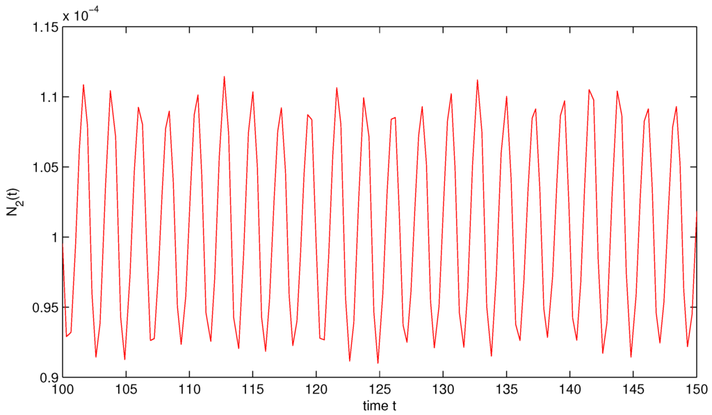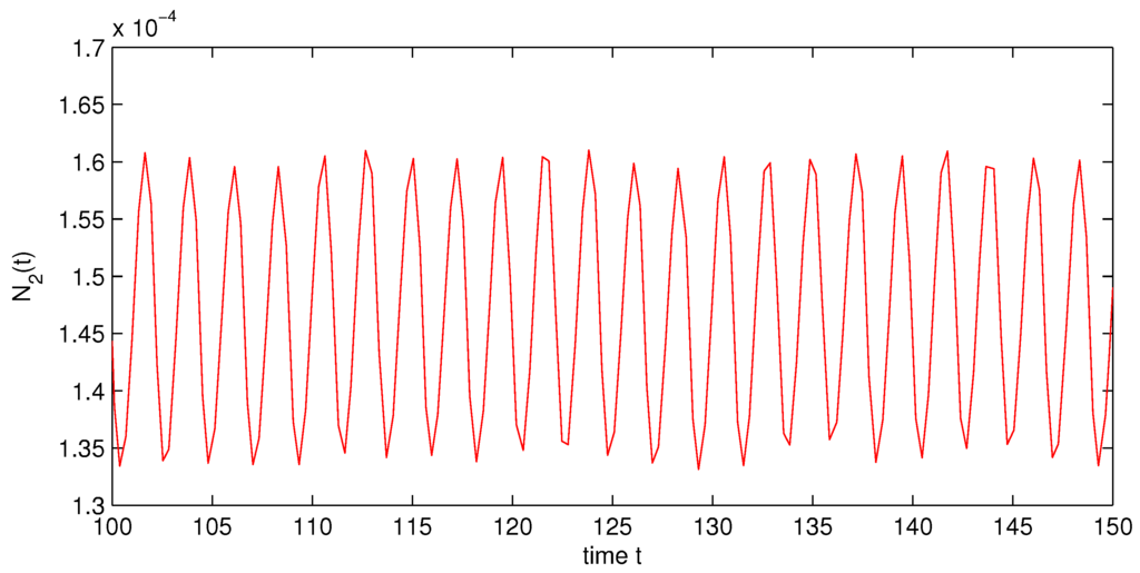 - Wang, K.; Zhu, Y.L. Global attractivity of positive periodic solution for a Volterra model. Appl. Math. Comput. 2008, 203, 493–501. [Google Scholar] [CrossRef]