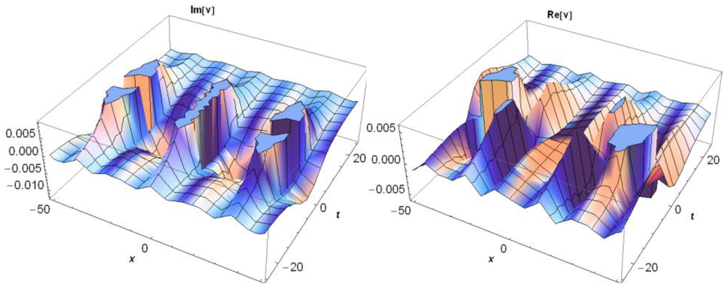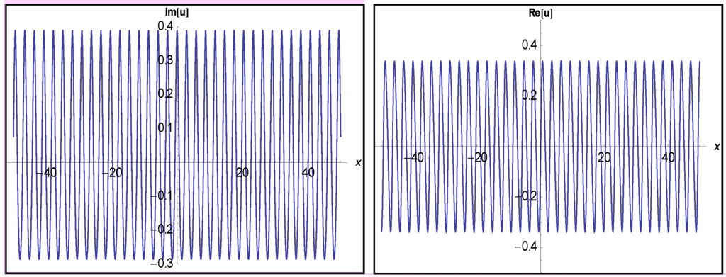 Considering Equations (35) along with (8) in (31) for and in Equation (23) for , we can obtain another new complex hyperbolic function solution to the DLW system (1) as the following, under the condition of Family-1;