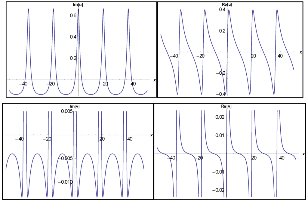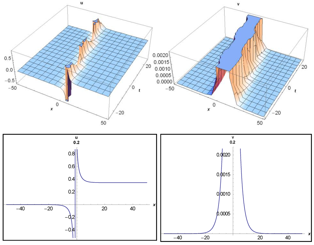 For Equation (34), if we use coefficients Equations (34) along with (8) in (31) for and in Equation (23) for , we can obtain new complex hyperbolic function solution to the DLW system(1) as the following, under the condition of Family-1;
