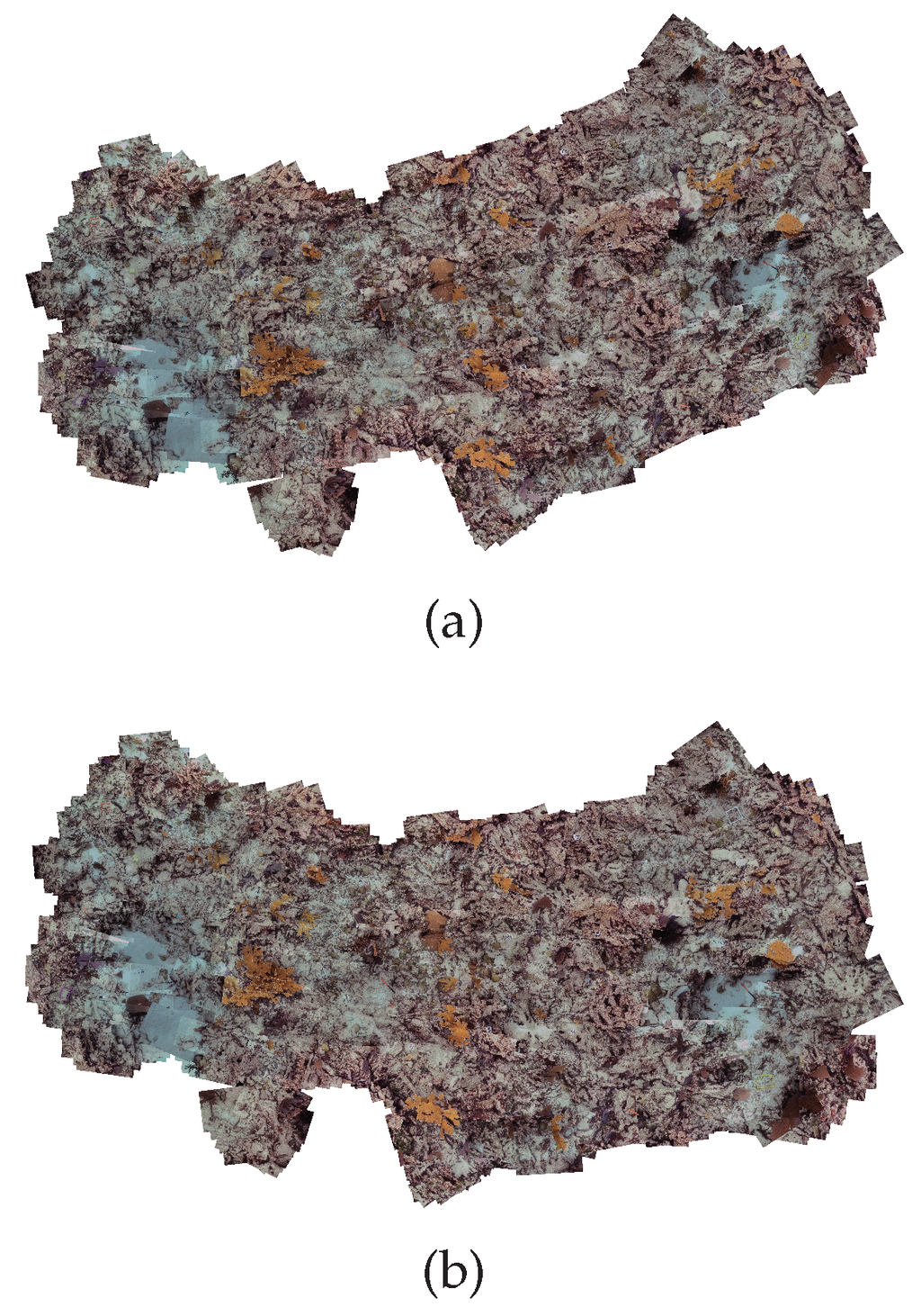 - Turner, D.; Lucieer, A.; Watson, C. An automated technique for generating georectified mosaics from ultra-high resolution unmanned aerial vehicle (UAV) imagery, based on structure from motion (SfM) point clouds. Remote Sens. 2012, 4, 1392–1410. [Google Scholar] [CrossRef]