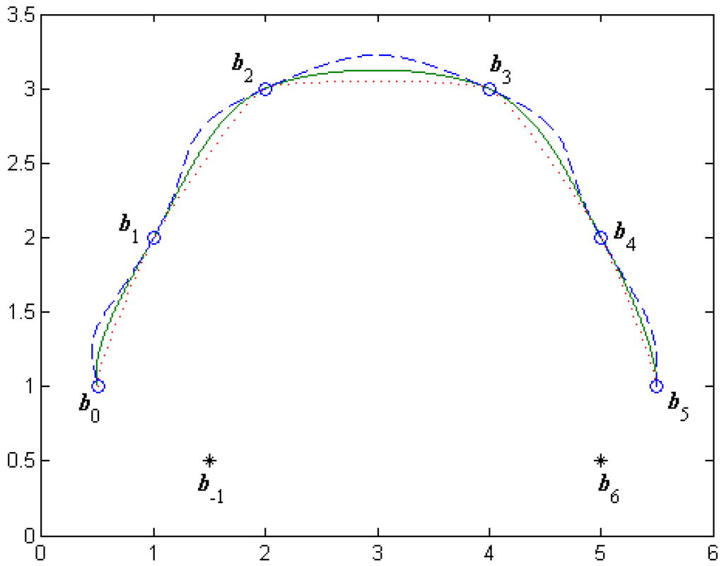 - Since Equation (10) contains the parameter α, the shape of the curve can be adjusted by altering the value of α even if the control points are fixed (see Figure 2).