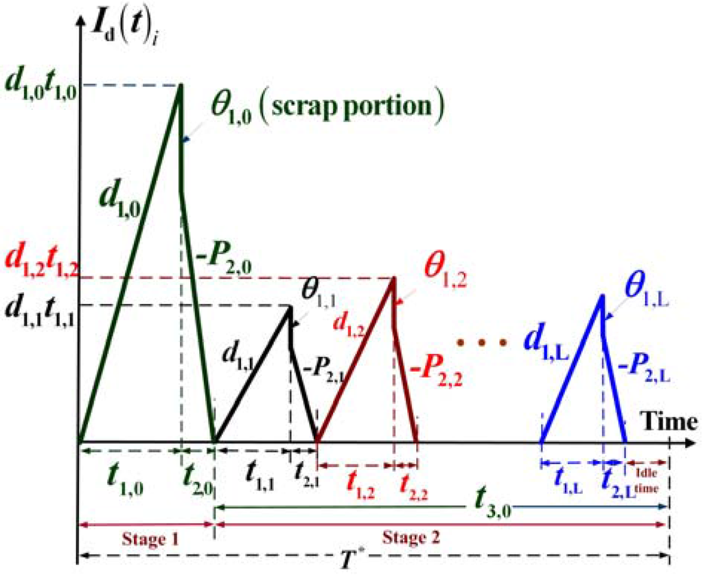 The following parameters are adopted in both stages of the proposed system (where i = 0, 1, 2, …, L, and i = 0 denotes the time during the production of the common intermediate part in the stage one):