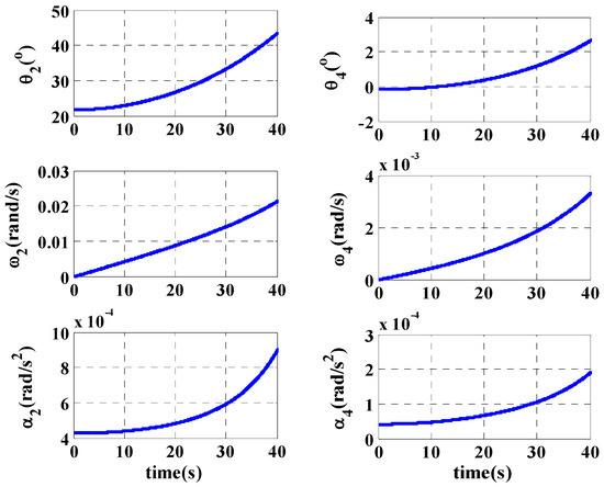 The acceleration relations of the system are derived as follows. Firstly, the relation between the velocity of the extending and shrinking of the cylinder O4O5 and the angular acceleration of the cutting arm is derived. Differentiate Equation (30), the angular acceleration response of the cutting arm is