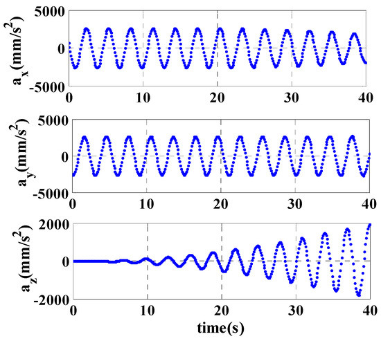 is the function about the pose and attitudes, which is expressed as follows. According to Equation (41), each motion of the components in the cutting part has an influence on the acceleration of the cutting tooth, and the motion has a high nonlinear character.