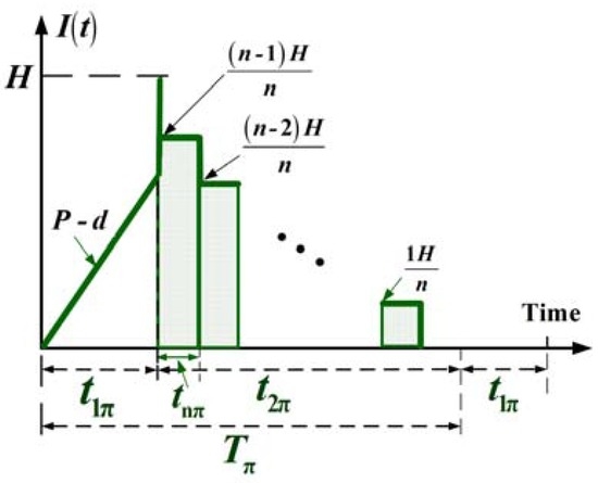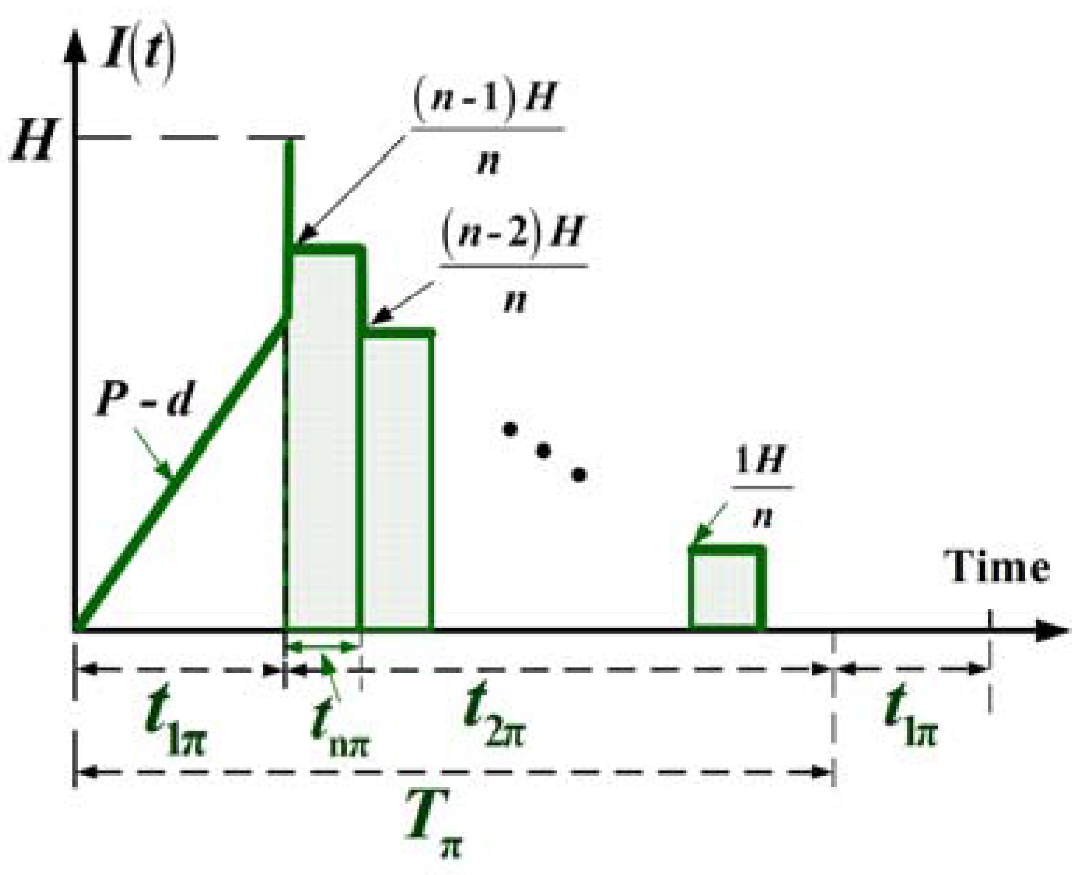 - tn = the fixed interval of time between each installment delivered during downtime t2π,