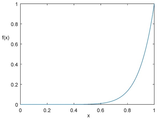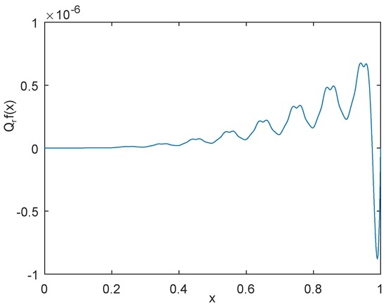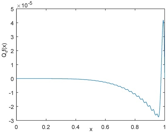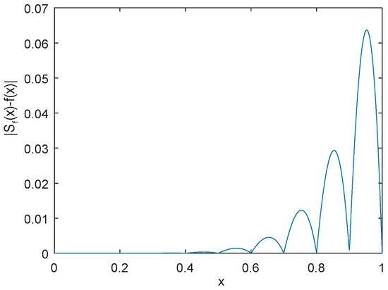 The profile of the function is shown in Figure 1. For convenience, we set , and , , then the approximation error using by is shown in Figure 2, the approximation error using by is shown in Figure 3, and the approximation error using by power interpolation with is shown in Figure 4. From these examples, we can see that the approximation effect of is much better than and power interpolation.