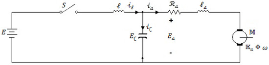 Proposed Motor model, where S is a switch, is the armature current, is the current through the capacitor, and is the inductor current. For other variable’s definitions, please see Table 1.