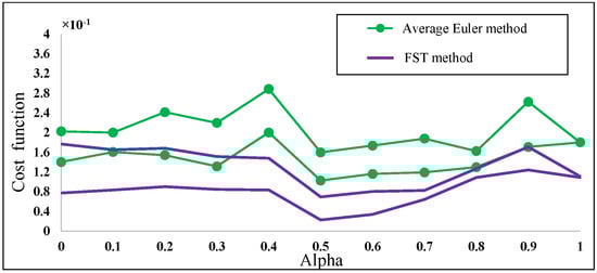 Corresponding solution plots are displayed in Figure 2 and Figure 3. Corresponding error plots are shown in Figure 4. These errors are the differences of the exact and the approximation solutions for two different methods: FST and Average Euler method []. FST is more accurate than the Average Euler method.