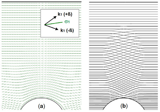 - Beyer, F.R. Hauptspannungstrajektorien in der numerischen Festkörpermechanik—Ein Algorithmus zur Visualisierung der Bauteilbeanspruchung in zwei und drei Dimensionen. Available online: http://nbn-resolving.de/urn:nbn:de:bsz:14-qucosa-178497 (accessed on 4 May 2018).