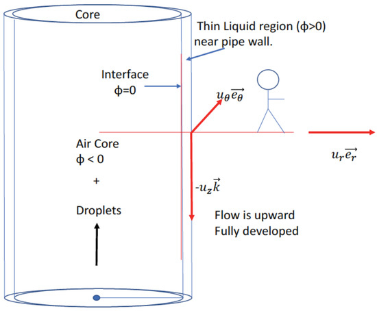 and where is the radial component of velocity, is the azimuthal component and is the component along the pipe in the direction of fully developed upward flow, is density, is dynamic viscosity, , , are body forces on fluid and is surface interfacial tension. Introducing the following definition,