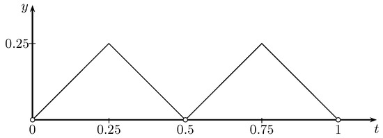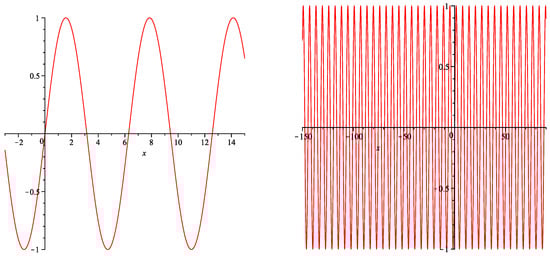 In short, by the setting (36), when with (see Figure 4), we have constructed the piecewise function F that approximates the sine function on () with the accuracy of . After getting the finite sequences , , and the function defined as above, we choose F as follows: