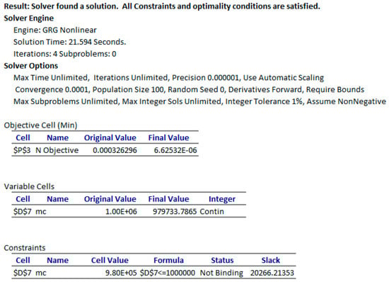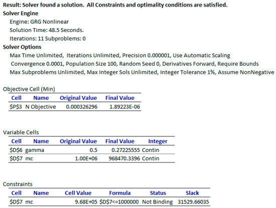 Answer Report generated by Excel NLP solver by varying mc only while gamma was held constant.