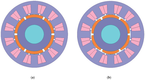 The geometrical representation of the investigated machines with (a) uniform rotor shape, (b) non-uniform rotor shape.