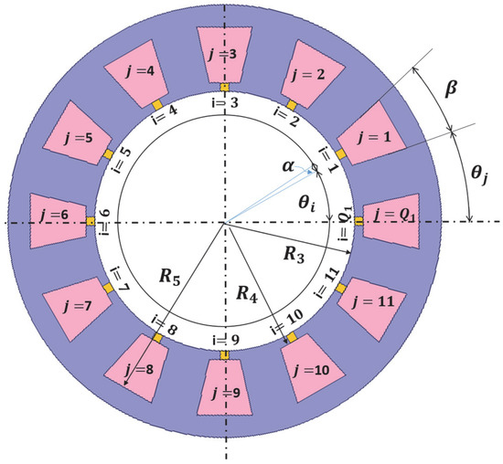 The angular position of the -th stator slot and -th stator slot opening are defined as (1) and (2), respectively.