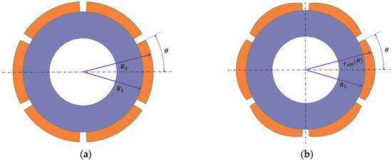 The rotor permanent magnet subdomain. (a) Uniform rotor, (b) non-uniform rotor.