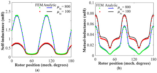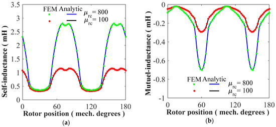 The semi-analytical model, based on the 2D exact subdomain technique and taking into account the iron core relative permeability, is used to determine the static/dynamic electromagnetic torque, the magnetic flux linkage, and the self-/mutual inductances whose various formulas have been clarified in [32,33].