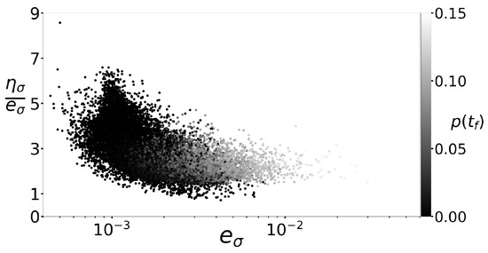 Figure 8 displays the relation between the relative error for and the effectivity of the estimator for 20,000 simulation results drawn randomly. The error increases with the final cumulative deformation, that is when the material exhibits a more intense viscoplastic behavior.