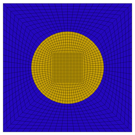 The mesh used for all numerical tests is displayed in Figure 1, where 1840 quadratic finite elements are used to discretise the continuum body , resulting in 14,882 + 7441 = 22,323 DoFs. For numerical integration, a Gaussian Quadrature is employed. The implementation of the tests is based on the open-source FE library deal.II [47].