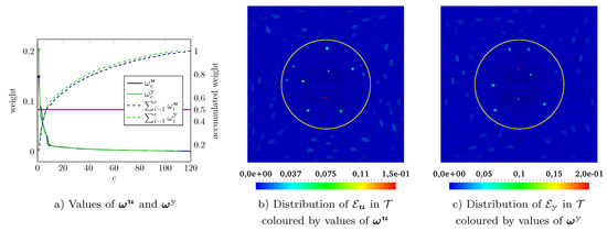 for snapshots of the stress field and the magnetic induction . The reduced meshes and equipped with the weights and are constructed by minimising the errors (36), with and being the number of elements in the reduced meshes. Different algorithms for the minimisation of (36) are discussed in [46].