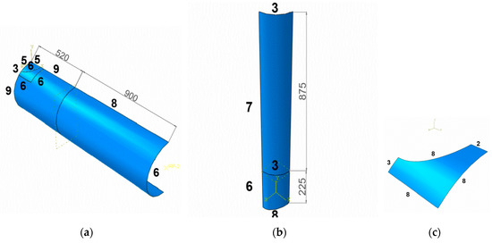 True article mesh density subdivision: (a) chord, (b) brace, and (c) reinforcement. [3]
