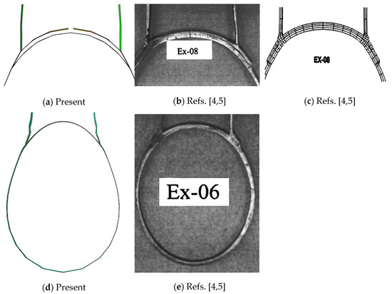 The results of the research will be shown in this section, comparing them with the results of the two researches [4,5] discussed in Section 2. Therefore, in order to overlap the outcomes, the numerical results of this research are shown in terms of load-ovalization curves and deformed shapes. The numerical values of both solutions are considered at the end of the loading process (e.g., end of the curves provided by the references).