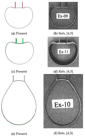 - Due to the fact that the automatic step sequences, with no hardening simulations, have the relevant and complete data, these were compared to the references by cutting rings from the center of the chord of each specimen. The ring of the research shows a perfect matching to the experimental case under compression. In the research study, as in the numerical reference, the buckling that occurs in some of the tension cases of the experimental research was not considered. However, the shapes obtained by this research kept good accordance, even in the specimens where buckling occurred.