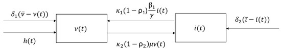 - A4. According to the latest National Survey on Violence against Women in Mexico (ENVIM) [2], the frequency of alcohol consumption by a violent man is proportional to the number of aggressions perpetrated by a battering man. Also, that the alcohol consumption events are generally periodic with usually weekly or monthly periodicity. In order to model this behavior, we use the modeling term . We assume that this situation can be properly described by a sine function with parameters that allow us to control its amplitude () and its frequency (): , where is a positive constant.