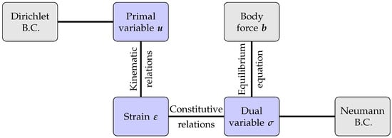 Graphical representation of the strong form of a structural problem (Tonti Diagram).
