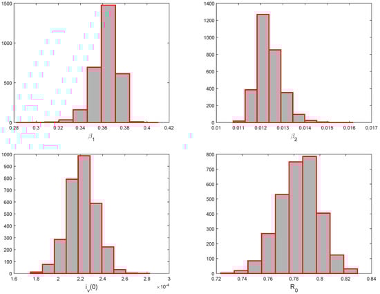 We now extend our parameters’ identifiability analysis, by incorporating two numerical techniques. These techniques are bootstrapping [,] and Markov chain Monte Carlo [,,], which allow us to introduce further information regarding the identifiability of the parameters and corroborate the identifiability of the basic reproduction number . It is recommended to ensure that the optimum parameter values of the model can be uniquely determined by the available real data. For non-linear-based models, the issue of identifiability is not straightforward.