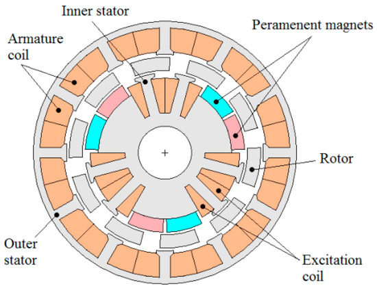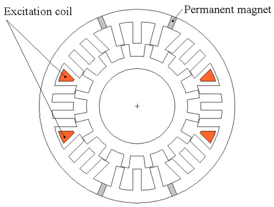 - Chen, Z.; Wang, B.; Chen, Z.; Yan, Y. Comparison of Flux Regulation Ability of the Hybrid Excitation Doubly Salient Machines. IEEE Trans. Ind. Electron. 2014, 61, 3155–3166. [Google Scholar] [CrossRef]